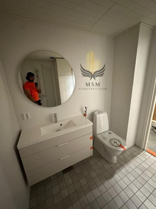 بناء حمامات جديدة بماده عازله حسب طلب الزبون وتأسيس صحيات متكامله والكهربائيات والخ ...